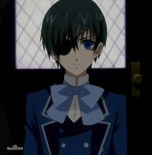 《黑执事》的 夏尔·凡多姆海恩(シエル·ファントムハイヴ),右眼一般戴眼罩。见图