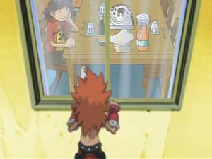 是数码宝贝第4部(无限地带),你描述的那个场景是主角进化错误(好像是被打败吧,太久没看了,不太记得了)变成的怪物,回到人类世界后的一个场景