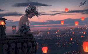 主角鬼刀和冰公主海琴烟看孔明灯的场景。可配情头。