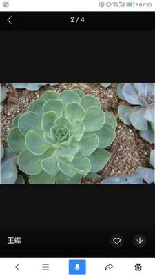 玉蝶(学名:Echeveria secunda var. glauca),又称石莲花、玉碟、宝石花、莲花掌。多年生肉质草本或亚灌木植物,株高可达60厘米,直径可达20厘米。叶互生,呈莲座状着生鱼短缩茎上,倒卵匙形,淡绿色,肉质,表面被白粉。单歧聚伞花序腋生;小花钟形,先端5裂,赭红色,顶端黄色,蓇葖果。原产地墨西哥伊达尔戈州,现为中国人的客厅里,常见的多肉植物之一。