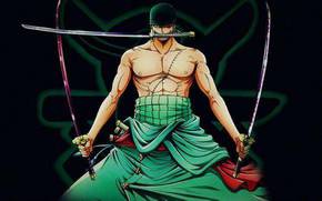 罗罗诺亚·索隆,人称:海贼猎人,是日本漫画《 海贼王 》及衍生作品中的角色,“草帽一伙”的战斗员,是使用三把刀战斗的三刀流剑士。两年前集结香波地群岛的被称之为“极恶的世代”的十一超新星之一。