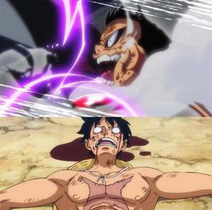 路飞看到伙伴们所在的御田城遗迹被凯多摧毁后直接暴走了,而且还疑似爆发了霸王色霸气,紧接着路飞开启了二档模式冲向了凯多所在的地方,一旁的罗想阻止但却没有成功。