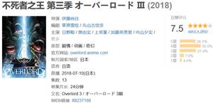 动画第二期《OVERLORDⅡ》于2018年1月起播出。 动画第三期《OVERLORDⅢ》于2018年7月起播出。