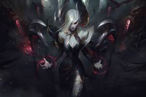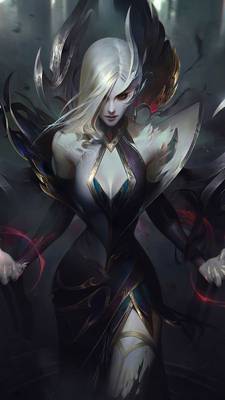 该图角色为游戏LOL中 堕落天使莫甘娜。