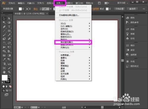 执行菜单栏中的效果—路径查找器,就可以找到路径查找器了,或者直接按路径查找器的快捷键“F”,如下图所示。