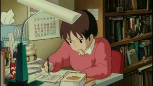 而《侧耳倾听》这部动画又主打的爱情路线,看名字也知道是个很甜的故事。大家对爱情这个主题都是抱有幻想的,在宫崎骏的片子里,我们都能看到女主角的明媚,和属于这个年龄的俏皮,这或许是他的一种习惯,不得不说,他创造出来的角色都像是有灵魂一般,即便知道每个人物的性格都相似,可就是怎么也看不腻,这也成为了几代人的记忆。