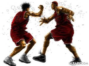是这个吗?最后结尾的时候两人第一次合作的惺惺相惜,我觉得都早已把对方作为最可靠的队友和对手了吧,这貌似也是我第一次看见流川传球,以后要找图片网上很多的,像灌篮高手漫画网里面这些都有的~~~~