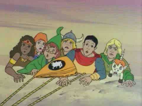 Dungeons & Dragons,直译应为龙与地下城,这部动画在小神龙俱乐部中播出时,被翻译成了《归乡历险记》。动画讲述几个孩子偶然间进入了魔法世界,而后为实现回家的愿望,进行着一次次历险。