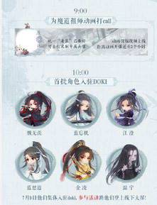 最最重要的一件事情就是,在动画上线当天上午10:00将会有首批角色入驻doki,大家记得去pick,这可以给《魔道祖师》获得更多的线下宣传资源!