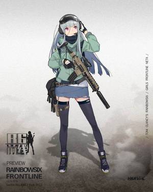 性格温顺而弱气,平日里谨小慎微,但在行动中绝对不会有丝毫的胆怯。虽然发弹稳定而可靠,不过对自己娇小的身材和力气并不满意,顺便偏好的颜色是冷酷的黑色。立绘设计是哥特LOLi风格,也是因为MP5声轻体柔的特点。