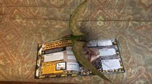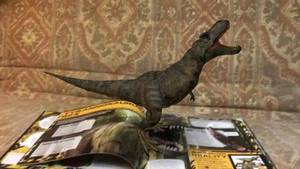 霸王龙在桌子上踩出脚印,翼龙飞过餐桌停在肩膀上;