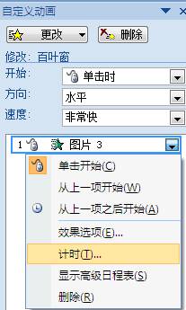 3、在动画列表中选择相应的项目,鼠标右键选择计时;