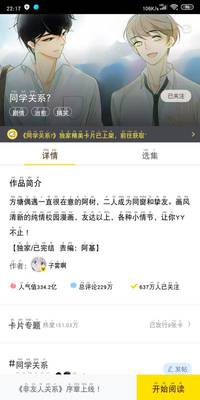 不健全关系第二季漫画在漫画岛看,在漫画岛面进行搜索,搜索之后可以看到该小说,然后顶级加入书架里面,就可以加入我们的书架中进行观看。同时也可以进行一些离线下载即可观看。看非友人关系需要看同学关系吗
