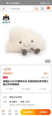 这个应该是jellycat下面的一个白云毛绒玩具,淘宝上有他家的天猫旗舰店,一个22cm的玩具卖200多,喜欢了你可以看一下。淘宝直接搜jELLYCAT旗舰店,就能进他家店了,宝贝名是英国jellycat趣味云朵 毛绒安抚玩具可爱儿童公仔玩偶娃娃,你点进去应该就能看到图片。你也可以看看评价,看一下别人怎么评价的这个玩具,看着是比较可爱的,你看下我发的图,应该就是这个吧。如果解决了你的问题,希望采纳给个好评,手打不易,谢谢