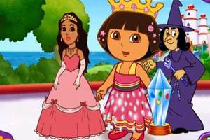 冰雪公主施展魔法,树立坚硬冰柱,阻拦朵拉探险,朵拉直接是过不去的,朵拉灵机一动,用双手抱紧自己,然后旋转绕过了冰柱。