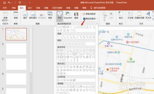网上搜索一张图片插入,这里我们将一张百度地图的截图插入幻灯片