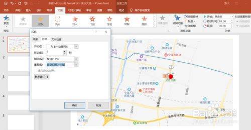在弹出的窗口中,点击 计时,在选项中选择 与上一动画同时、直到幻灯片末尾。点击确定。然后放映可以看到闪烁效果。