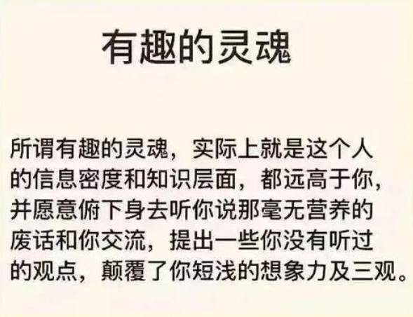 有趣的灵魂与美丽的皮囊,其实有趣的灵魂比美丽的皮囊更加重要。虽然你有一个美丽的皮囊,但是你没有有趣的灵魂,别人跟你相处的时候也不会感觉到愉快。人与人相处最重要的就是氛围,如果有一个好的氛围,两个人将会变得特别的好。