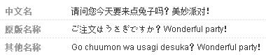 由下面的图片可知,您上传的图片出自动漫《请问您今天要来点兔子吗?》