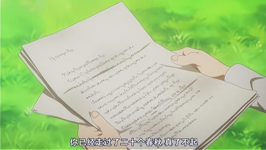 而当女儿每成长一年,在读到妈妈信的那一瞬间,我都会忍不住有种落泪的冲动。虽然这50封信的内容在动漫中没有全部说明,但是这一段情节完美的融合到委婉的背景音乐中,而母亲所写的内容对观众而言似乎也不是很重要了,因为不管写的什么,那都是她对女儿一生的爱。