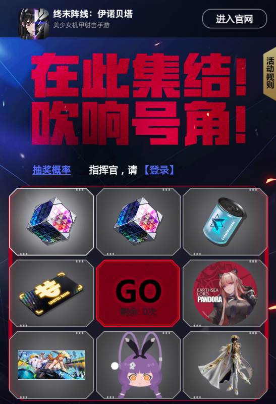 当然,作为一款诚意满满的游戏,属于《终末阵线》指挥官们的福利自然不止于此!在《终末阵线》X《Code Geass 叛逆的鲁路修》联动期间,还有着全新「在此集结!吹响号角!」主题福利活动等待着大家参与,鲁路修正版手办、“贝阿特丽”兔兔包、游戏主题鼠标垫及角色徽章等丰厚福利现已准备就绪,还等什么,即刻前往官网,参与活动赢取丰厚奖励!