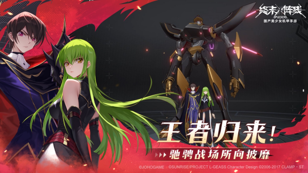 而此次《Code Geass 叛逆的鲁路修》与《终末阵线》联动合作,是“鲁路修”这个IP第一次与国内游戏产生联动合作。《终末阵线》希望此次合作给指挥官带来不一样的故事体验,也让更多国内的粉丝感受鲁路修非凡的魅力!机甲已整装就绪,Geass能力即将觉醒,黑暗骑士团集合,静待指挥官在这个盛夏上线终末阵线体验非凡的鲁路修剧情!