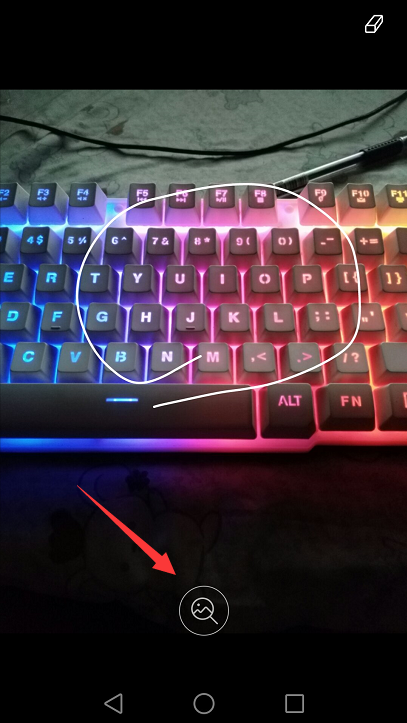 4、拍摄完成后,手动圈拍摄物体需要识别的具体位置,然后点击下方的搜索按键,开始搜索,即可识别所拍图片的具体信息。
