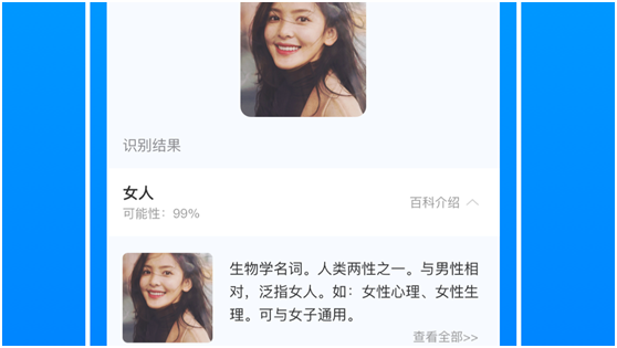 进行全网大数据搜索,通过智能识别图片模式,帮你找到图上的人,无论是明星、网红,还是花草、植物,都可以用它进行拍照识图,帮助大家立刻了解到这些未知事物、人物的信息。