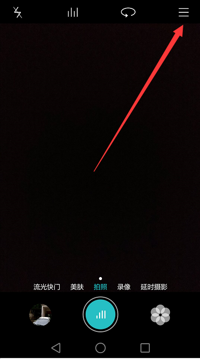 1、打开手机的相机功能,点击右上角的三条横线,进入到菜单选项中。