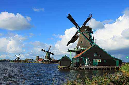 2、金德代克—埃尔斯豪特村,距荷兰首都阿姆斯特丹约8千米,这里有19个建于18世纪30~40年代的风车,形成当今世界最大的风车群。