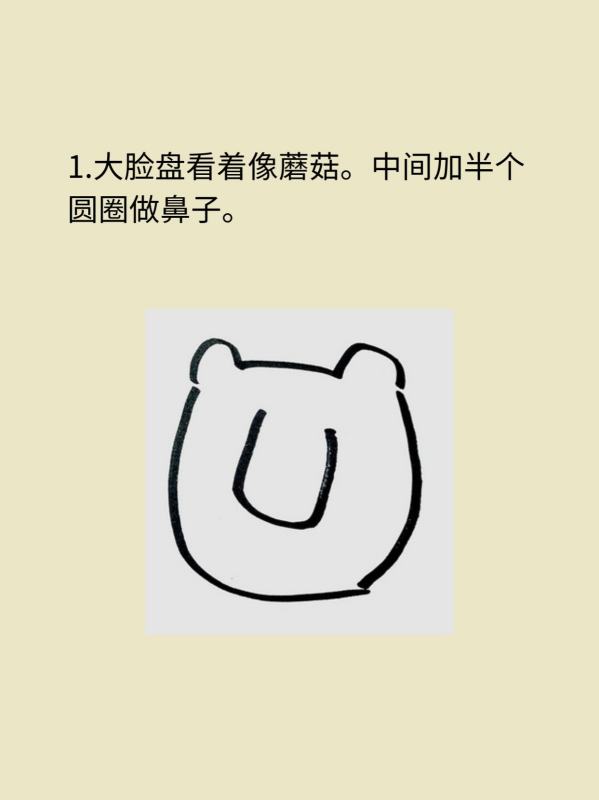1.大脸盘看着像蘑菇。中间加半个圆圈做鼻子。