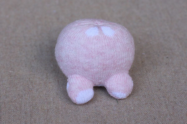 Step.10剪好后把周围缝好,留开口处塞入纤维棉,用针线把开口处缝好。身体就成形了。