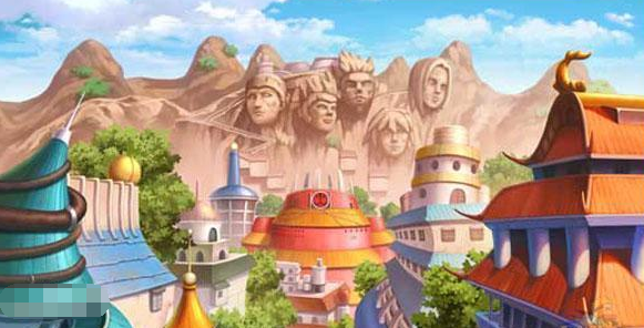 木叶村的整体是个扇形, 当任何人走进木叶时,第一眼就会看到矗立在木叶最高峰的历代火影的石像。