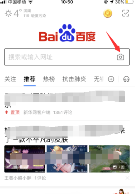 2、然后进入手机百度搜索引擎,选择照相机进入照片搜索框。