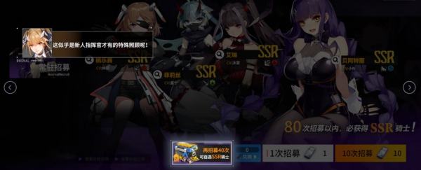 开局过完剧情直接跟着引导走,一路通关至1-6打赢斑比小姐姐,这时候可以前往邮件领取福利50张角色抽卡券、一个SR角色+角色对应的SR武器, 拿到50抽之后,直接开抽,这里的卡池抽满40抽可以自选一个SSR角色,开局福利还是很不错的。
