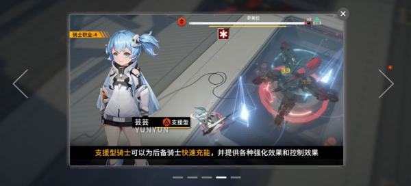 支援型骑士:是队伍中的辅助角色,除了可以给骑士快速回复支援大招能量外,还可以给BOSS添加各种异常效果,配合火力骑士自带的效果可以对敌人造成更多的伤害。