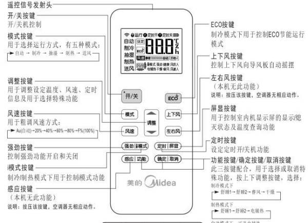 如果是模式:通常有五种模式:自动 → 制冷 → 抽湿 → 制热 → 送风