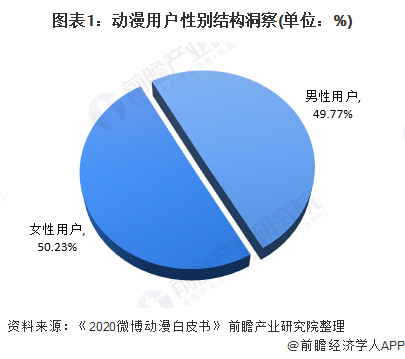 在这近3亿的泛二次元用户中,近50.23%为女性用户,而49.77%为男性用户。性别占比较为均匀。