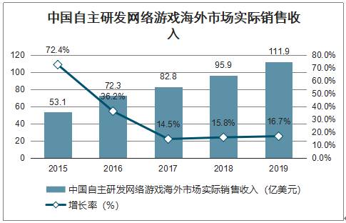 智研咨询发布的《2020-2026年中国移动游戏行业发展动态及投资发展潜力报告》数据显示:2019年中国自主研发网络游戏海外市场实际销售收入达111.9亿美元,中国游戏产业中越来越多企业布局海外市场。2019年中国移动游戏在全球移动游戏市场中的份额预计达到31.6%,中国移动游戏在全球市场中的影响力不断增强。