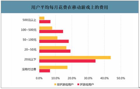 用户平均每月花费在移动游戏上的费用