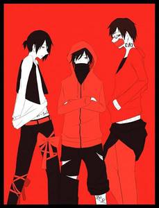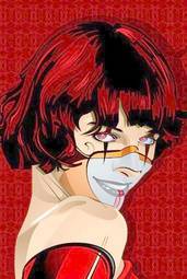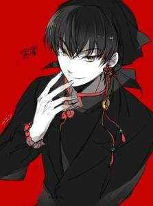 你说的这个应该是动漫的一个,我找一找应该可以找到找一张图片 是一个外国男人长发还是卷的好象还带帽子但不是彩色的!背景是红色的人物是黑白的!好象是这样的