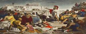 俄狄浦斯智慧超群,热爱邦国,大公无私。在命运面前,他不是俯首帖耳或苦苦哀求,而是奋起抗争,设法逃离“神示”的预言。继而,他猜破女妖的谜语,为民除了害。最后,为了解救人民的瘟疫灾难,他不顾一切地追查杀害前王的凶手,一旦真相大白,又勇于承担责任,主动请求将他放逐。尽管戏剧的结局是悲惨的,但这种明知“神示”不可违而违之的精神,正是对个人自主精神的肯定,是雅典奴隶主民主派先进思想意识的反映。