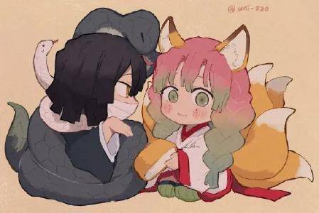 你发的图片是鬼灭之刃中”甘露寺蜜璃”和”伊黑小芭内”的可爱变形同人图片,是情头