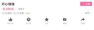 《开心锤锤》可能许多人没有听说过这个名字,但如果把它算入动画行列,《开心锤锤》的播放量是实打实的某站第一。下面来详细分析下,如下: