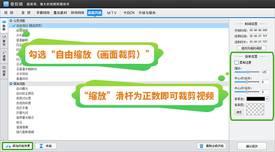 在“画面风格”-“画面”面板下,勾选“自由缩放(画面裁剪)”,将右侧的“缩放”滑杆向右拉至正数即可裁剪。