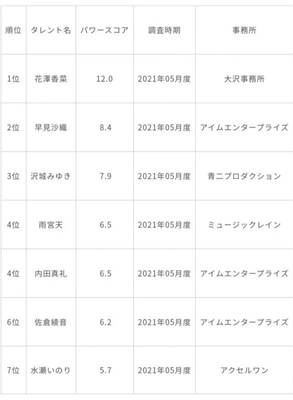 不过可以参考今年日本网站对声优的一个统计,毕竟曾经很多知名声优也都退隐结婚了,所以很多已经不在了。反正看了很多这两年的声优人气排行,通常雨宫天位置都是4-6的位置。其他位置除了花泽香菜比较稳定前二以外都来回变动,所以雨宫天目前人气方面已经在触及最顶端了,但可能还需要一些些的时间