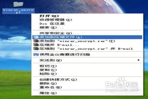 鼠标左键点击“winrar_encrypt”文件夹,然后点击鼠标右键,在出来的菜单中选择“添加到压缩文件”,出现“压缩文件名和参数”对话框。
