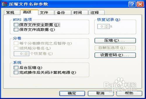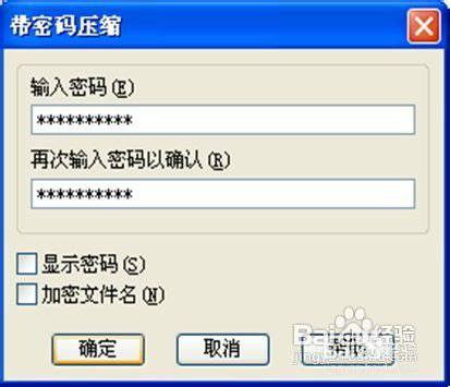 切换到“高级”选项卡项,鼠标左键点击“设置密码”按钮,会出现“带密码压缩”对话框。这其中“加密文件名”的选项是指在没有密码的情况下打开该压缩包后是否能够看到被压缩后文件的文件名。