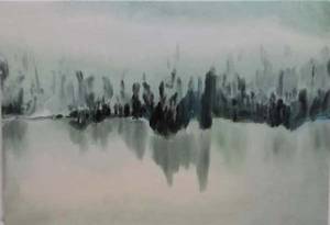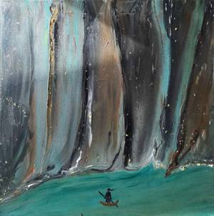 4、灵遁者油画作品《江湖》。尺寸:40×40cm