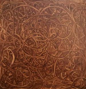 9、灵遁者油画作品《压力》。尺寸:90×90cm